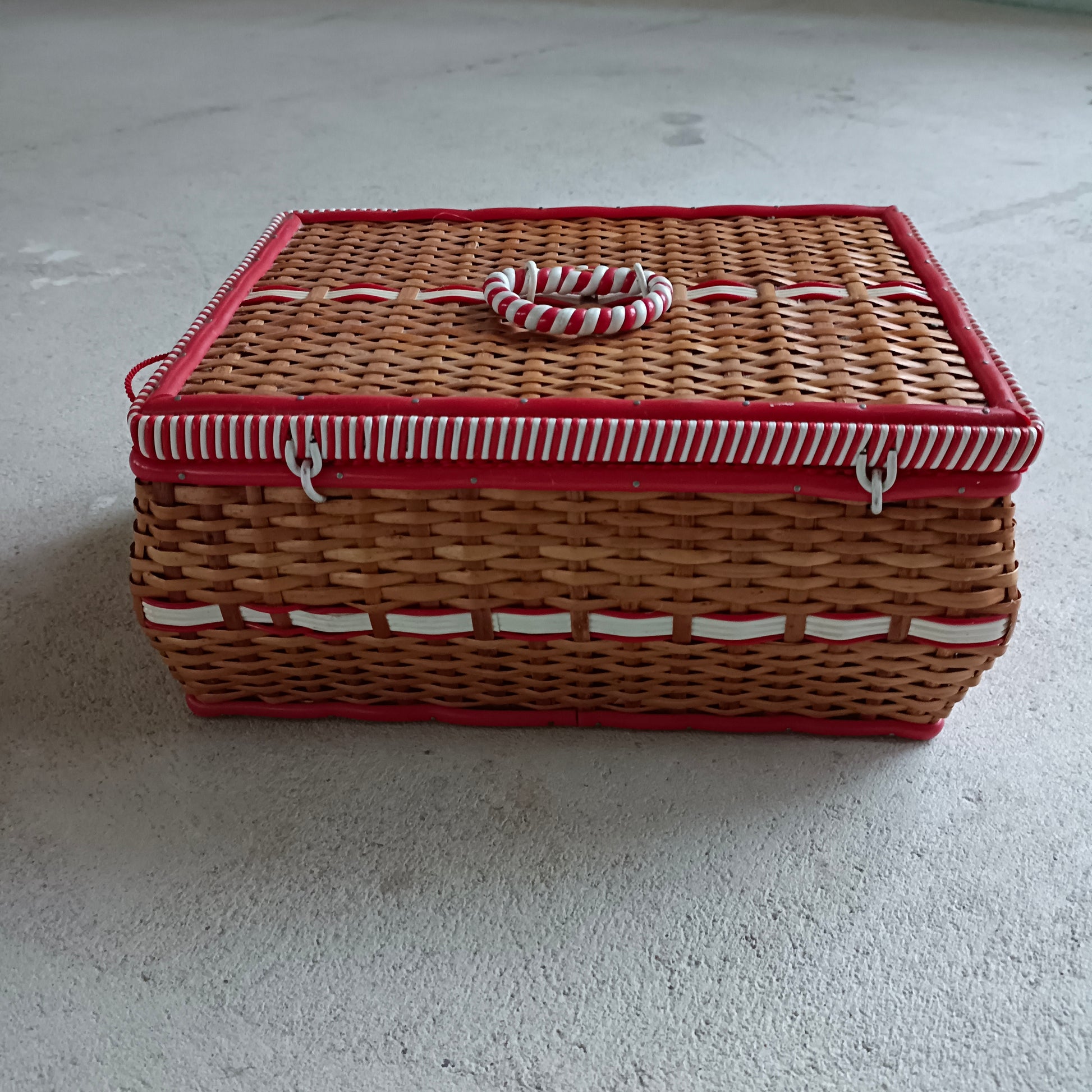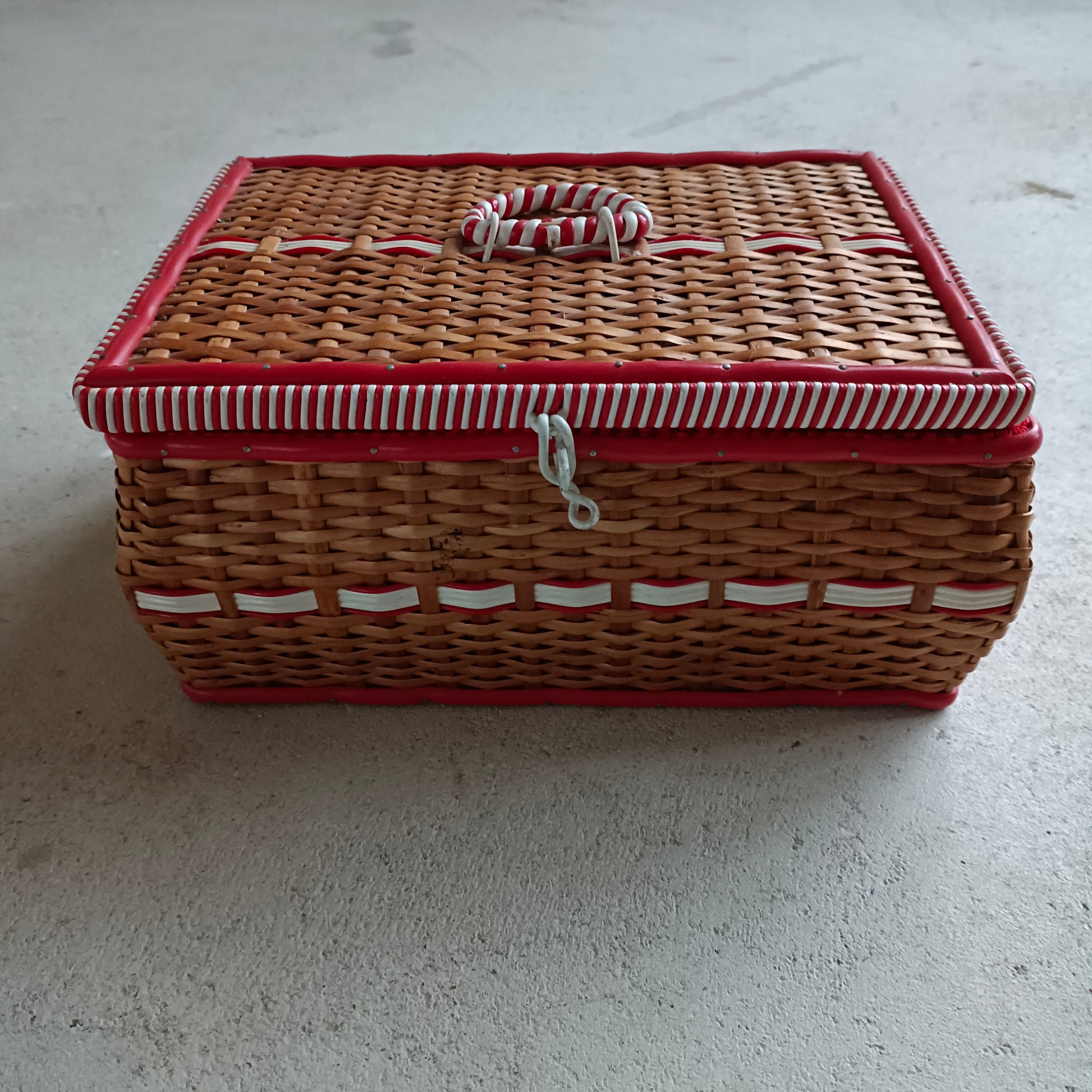 Boîte à couture ancienne osier et scoubidou