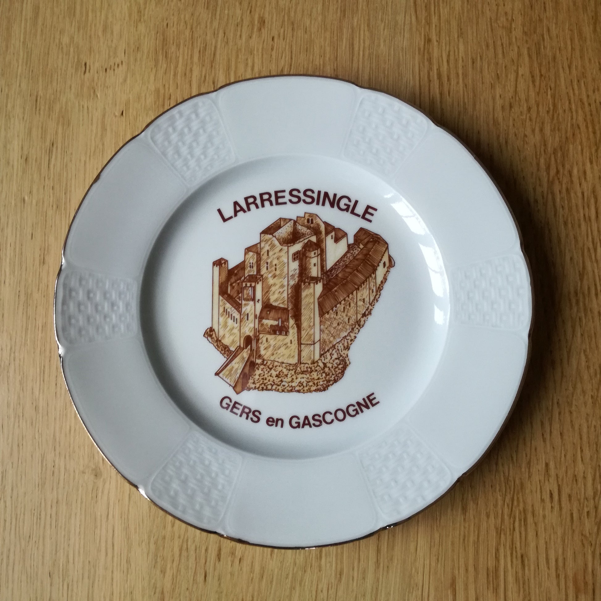Petite assiette souvenir de Larressingle, Gers en Gascogne, Porcelaine M. P. Samie