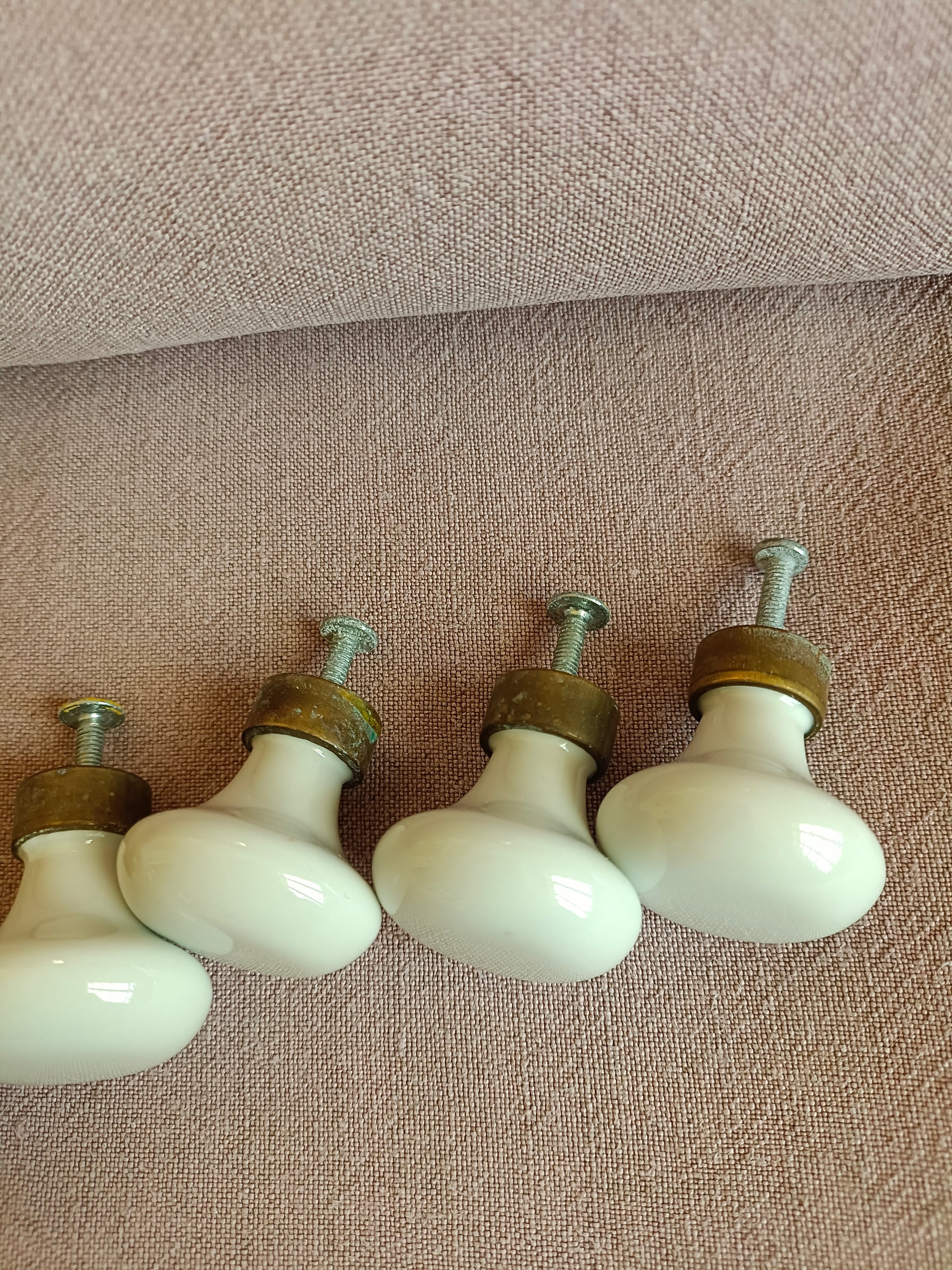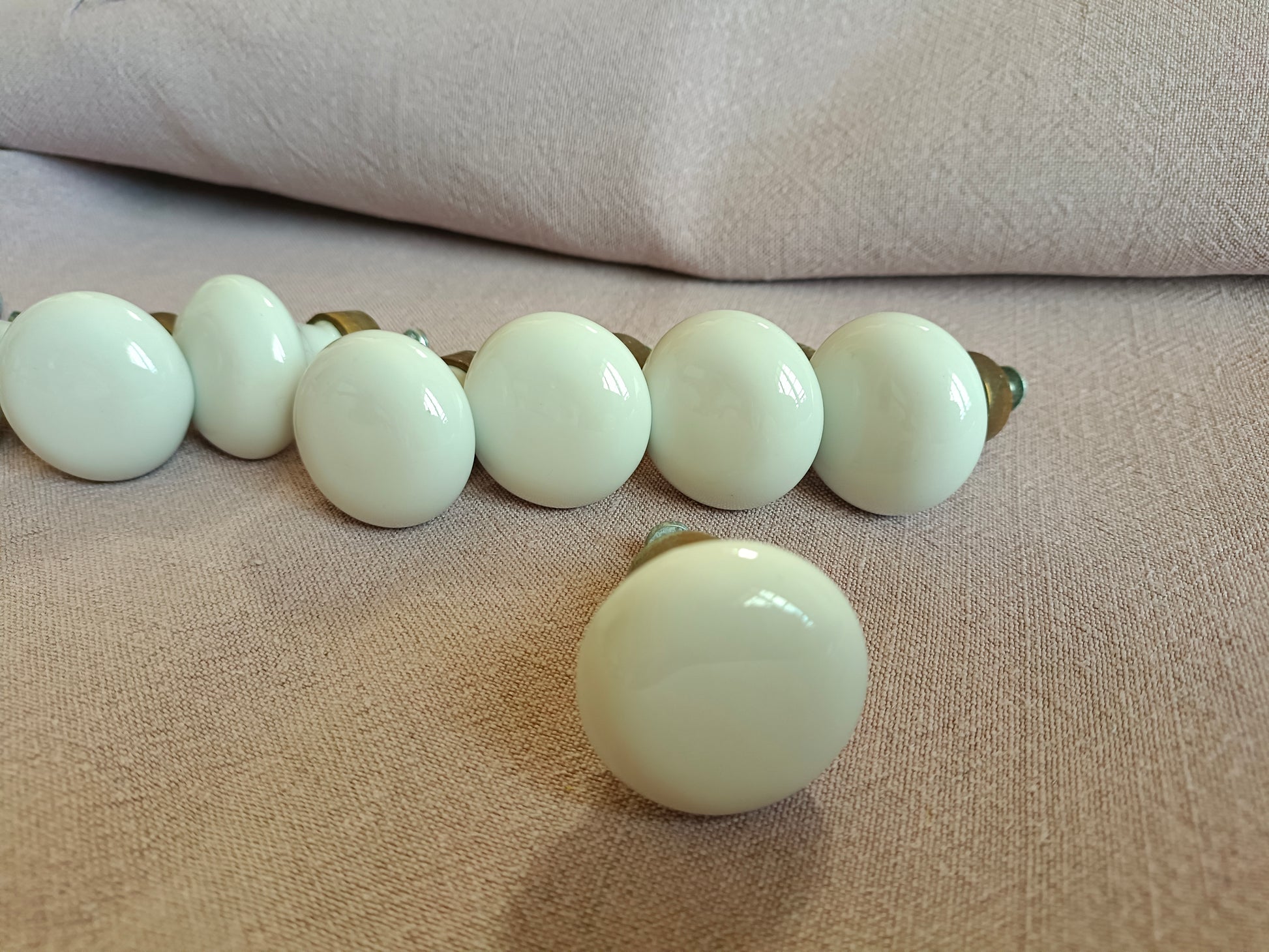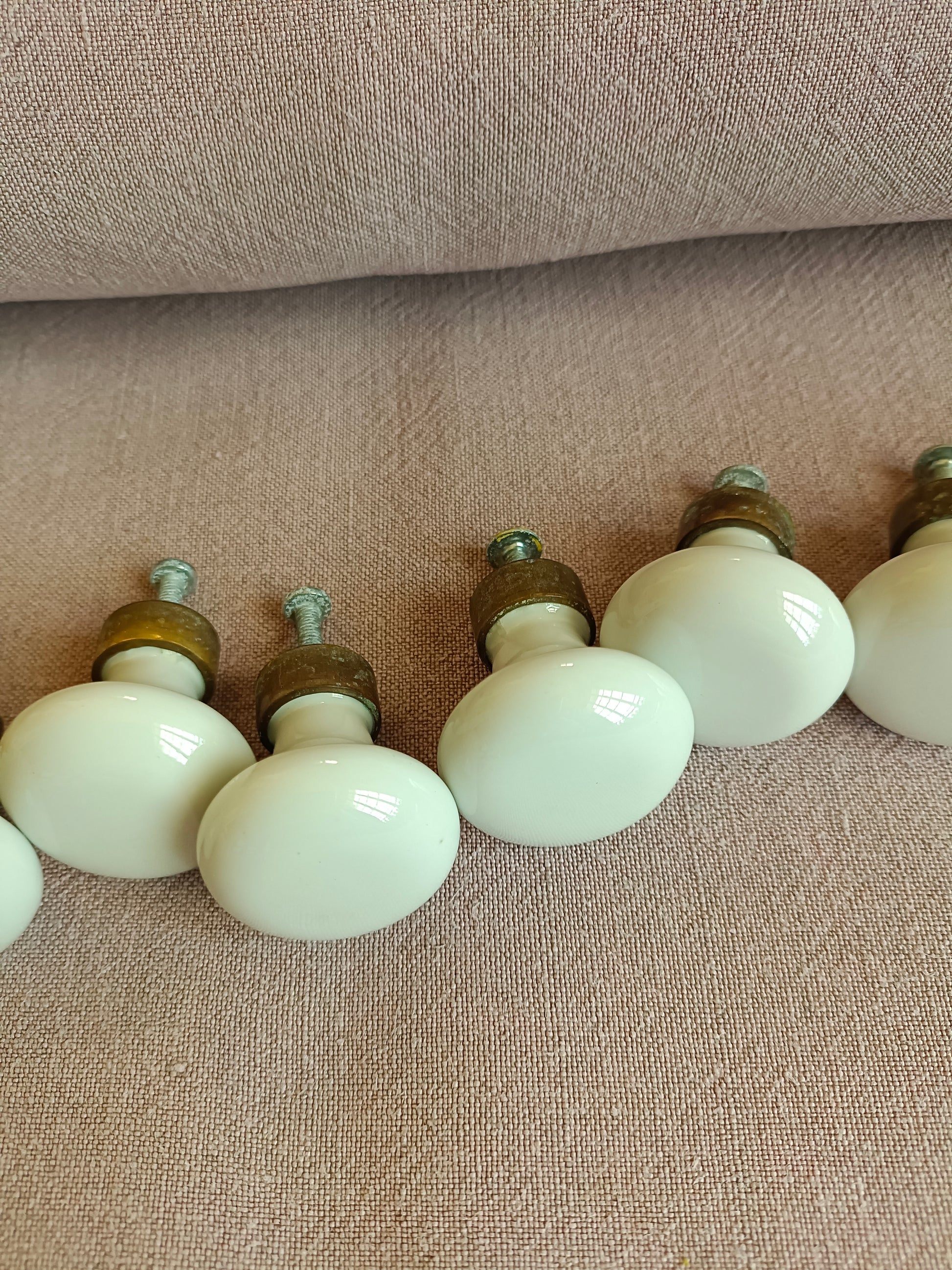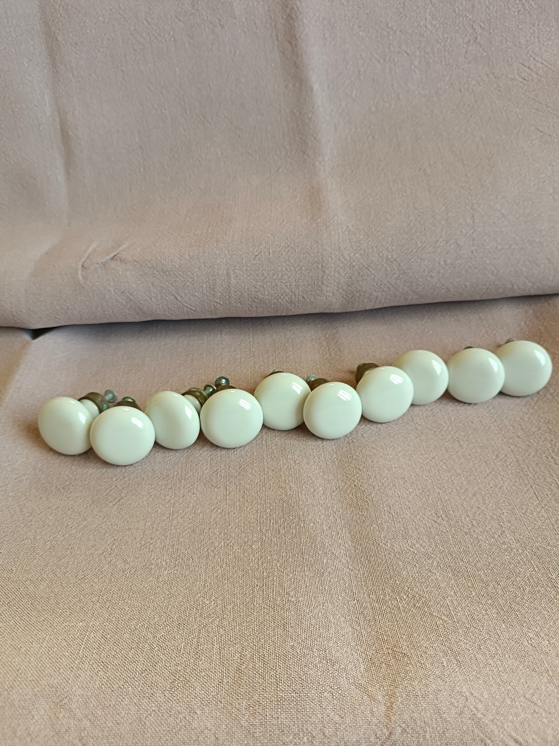 10 boutons de meuble ou placard en porcelaine et laiton