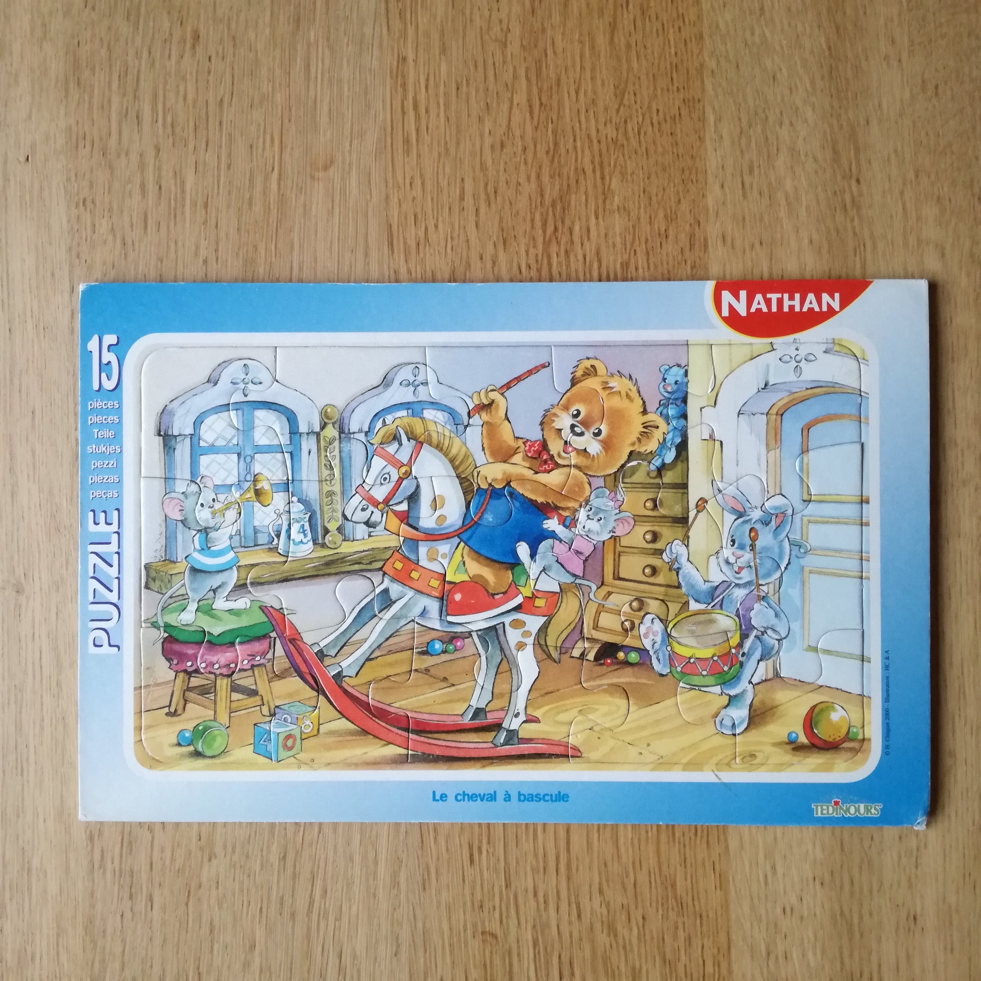 Puzzle 15 pièces, Tedinours "Le cheval à bascule", Nathan, 2000