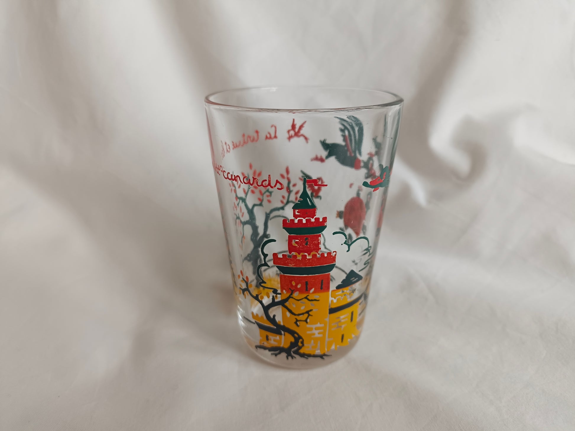 Verre à moutarde "La tortue et les deux canards" Fables La Fontaine VHR