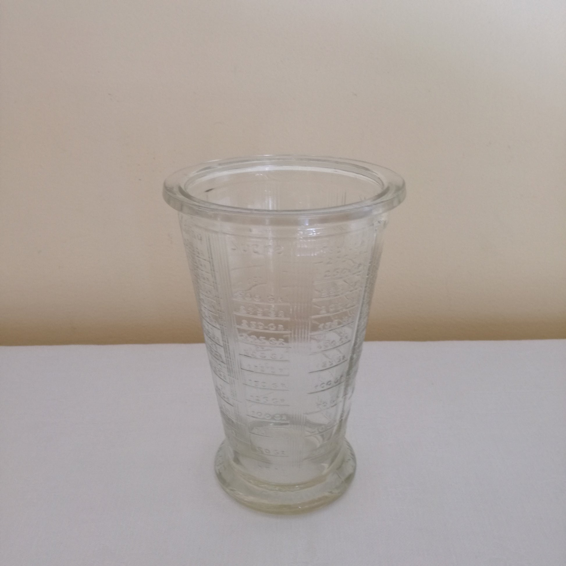 En verre épais. Aucune ébréchure. Vaisselle de cuisine. "Verre gradué - Mougin". Fabriqué en France. L : 10 l : H ; 16 Très bon état